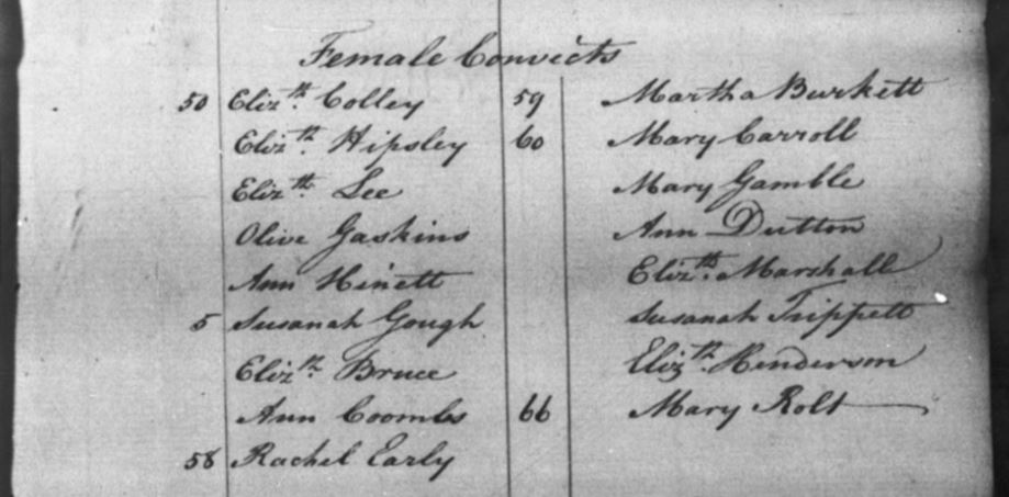 List of female convicts at the Settlement on Norfolk Island 17 Nov 1788