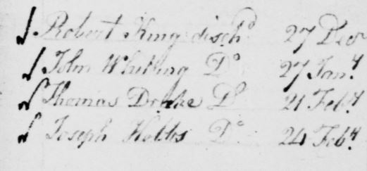List of Marine Officers, Non Commisioned officers and Privates desiring to remain in the Colony after the expiration of their service – 1 Mar 1790
