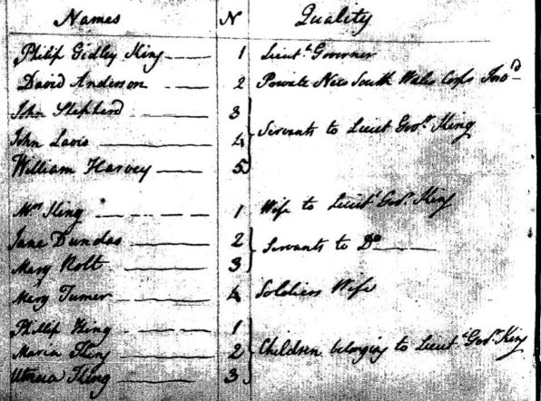 - Lieut Phillip Gidley King, Lieut-Governor of Norfolk Island